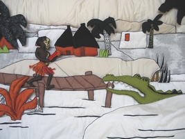Un petit garçon, Léon, est confronté à un grand crocodile en tombant dans la rivière...