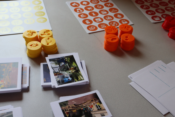 Pour appuyer ces réflexions des photos, matières, jetons imprimés en 3D et stickers étaient prévus, afin que chacun-e ait tous les moyens en main pour développer sa créativité, en étendant au maximum le champ des possibles !